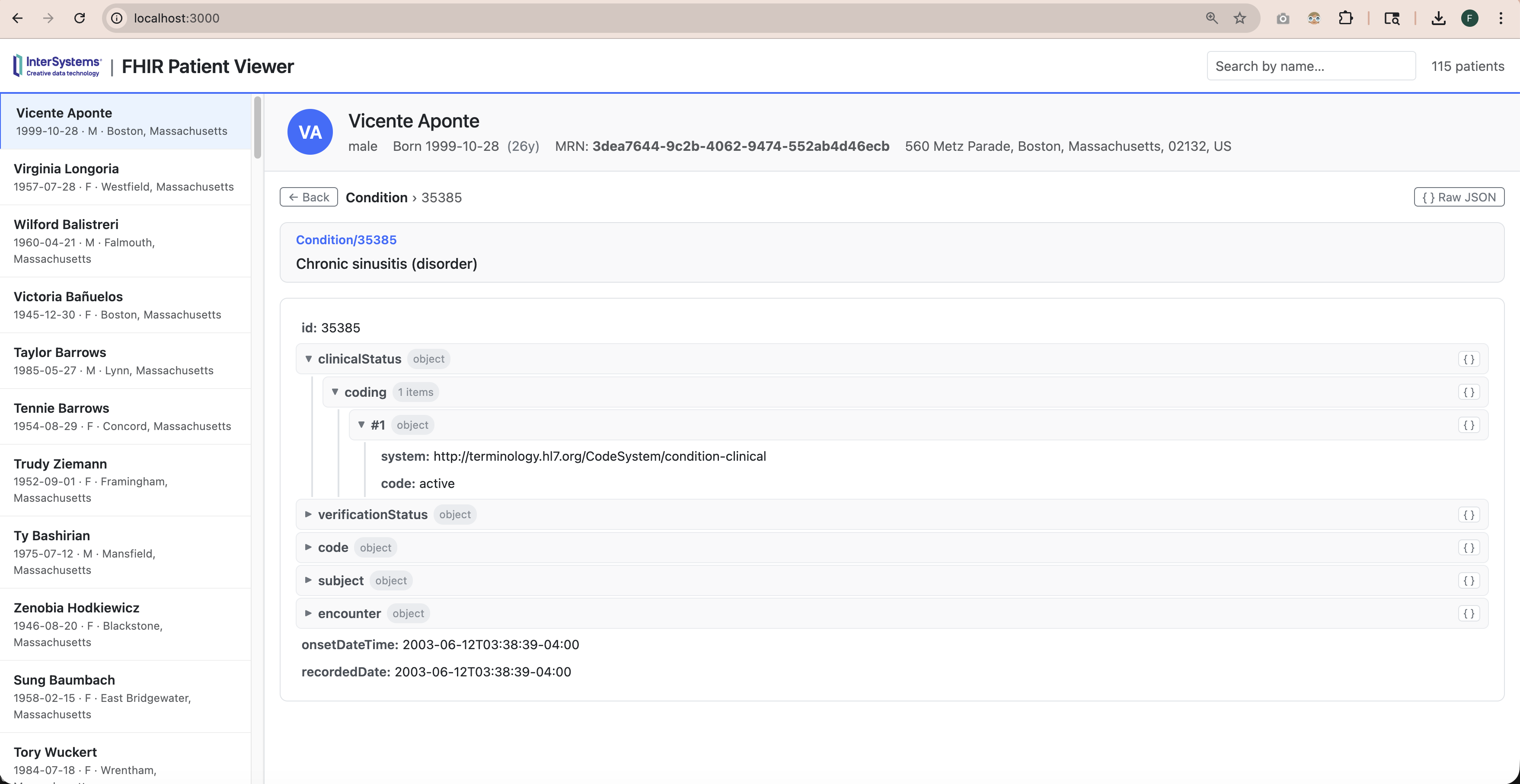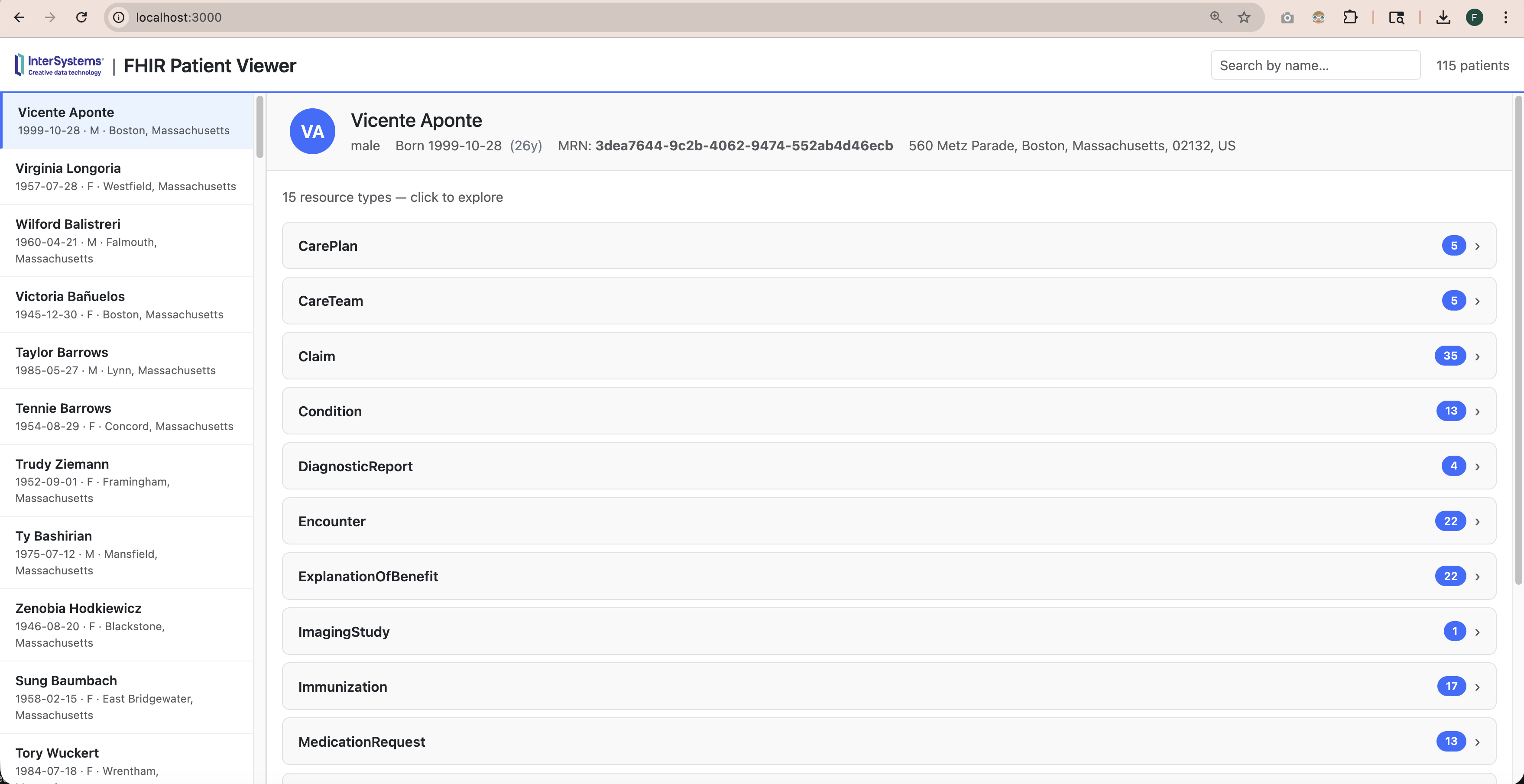 它预装了由Synthea生成的 115 个合成患者数据