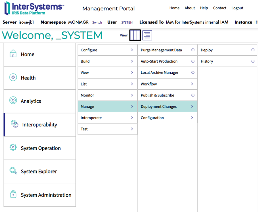 使用增强型日志监控器前,请先从OpenExchange下载示例代码。下载的文件为xml格式,可以直接导入。导入时请转到管理门户,并导航至“Interoperability”->“管理”->“部署变化”->“部署”。