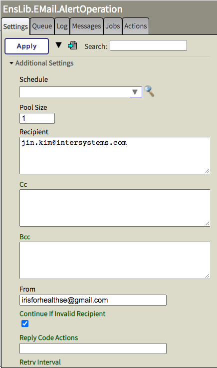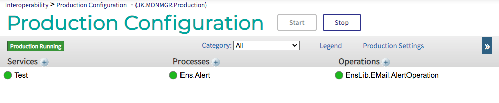 尽管由我制作的增强型日志监控器与上述这些日志监控器管理器(^MONMGR)非常相似,它的好处在于给用户提供了一个熟悉的界面和对警告信息的精准路由及管理能力——每个写进消息日志(messages.log文件)的告警条目都会被转换成一条Production里的消息,再按路由规则(Ens.Alert)精细过滤出特定的警告。这些警告可以通过Production中的操作(Business Operation)使用邮件和短信等方式发送出去。不仅如此,现在你还可以在Production中的邮件适配器设置来轻松编辑通知的收件人。
