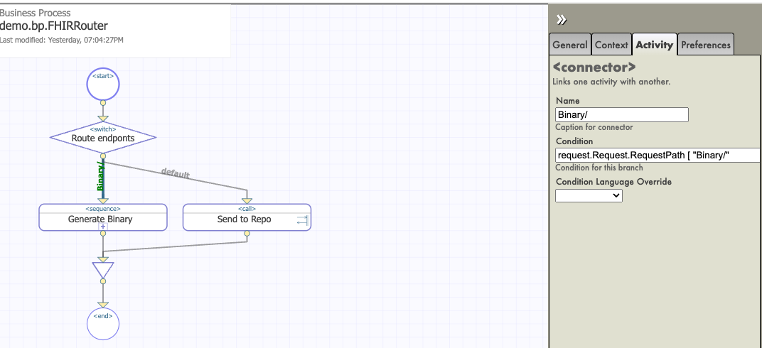 让我们来看看名为FHIRRouter 的业务流程: