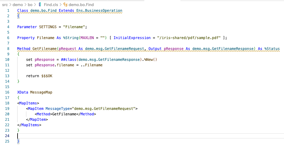 如果有了文档 ID,我们就会调用名为 "查找(Find)" 的业务操作来查找与该文档 ID 相关的文件名: