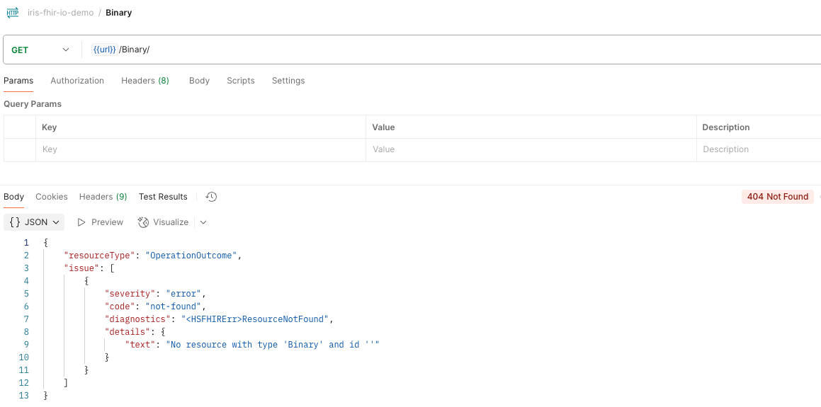 "diagnostics": "<HSFHIRErr>ResourceNotFound",