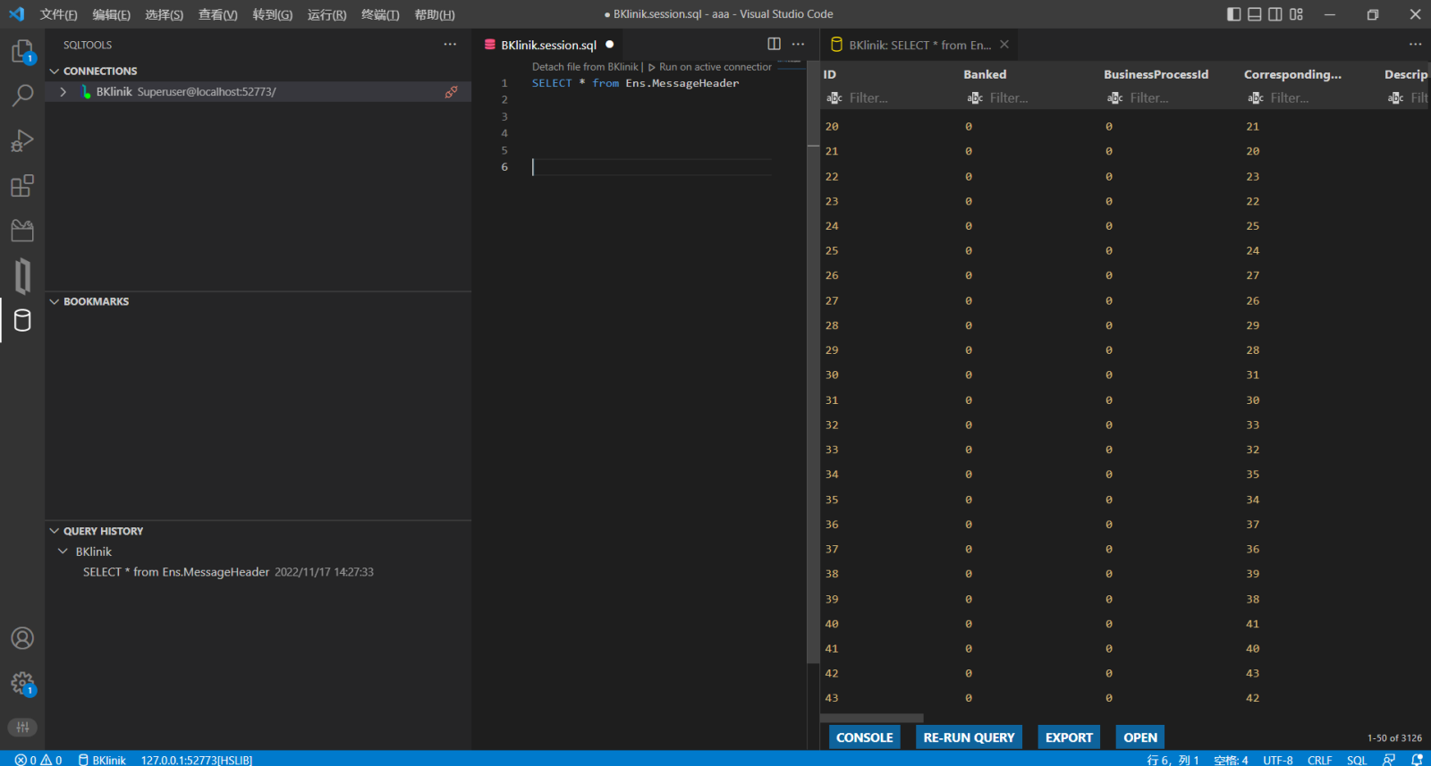 如果你安装了【SQL Tools InterSystems IRIS】那么上述配置中的sqltools.connections就是你需要的连接配置,你可以尝试改成你自己的库,然后进行一些简单的SQL操作。当然个人还是推荐使用DBeaver,这个更好用。