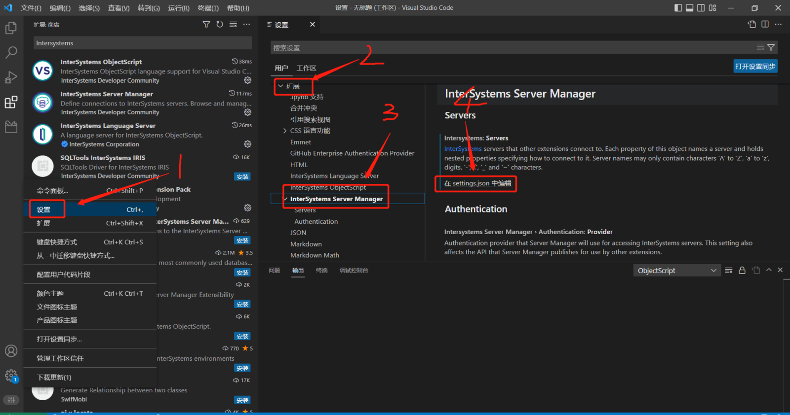 打开:设置 -> 扩展 -> InterSystems Server Manager -> settings.json