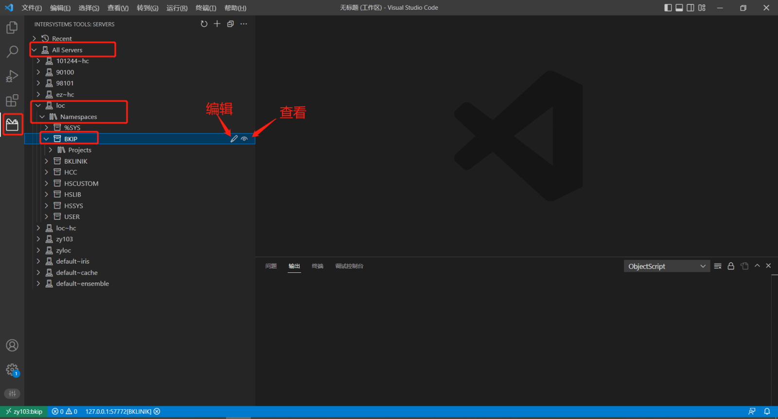 此时会出现一个IRIS的图标,ObjectScript,如图所示: