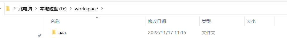- 首先,你得建立一个文件夹,如图:本文是在D://workspace建立的一个aaa文件