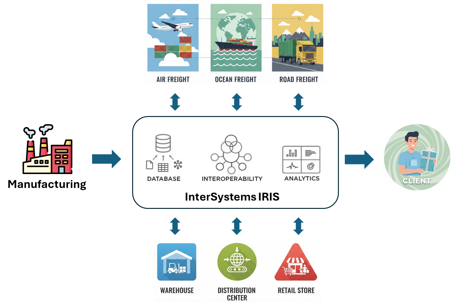 所有供应链流程都需要强有力的规划,并始终得到必要的数据和分析的支持,以便在原材料采购、生产、存储、交付(物流)以及必要时将产品返还(逆向物流)给最终消费者的过程中,根据质量、准确性、灵活性和经济性来规划和执行各项活动。InterSystems IRIS 可通过其互操作性、数据库和分析功能支持供应链规划:
