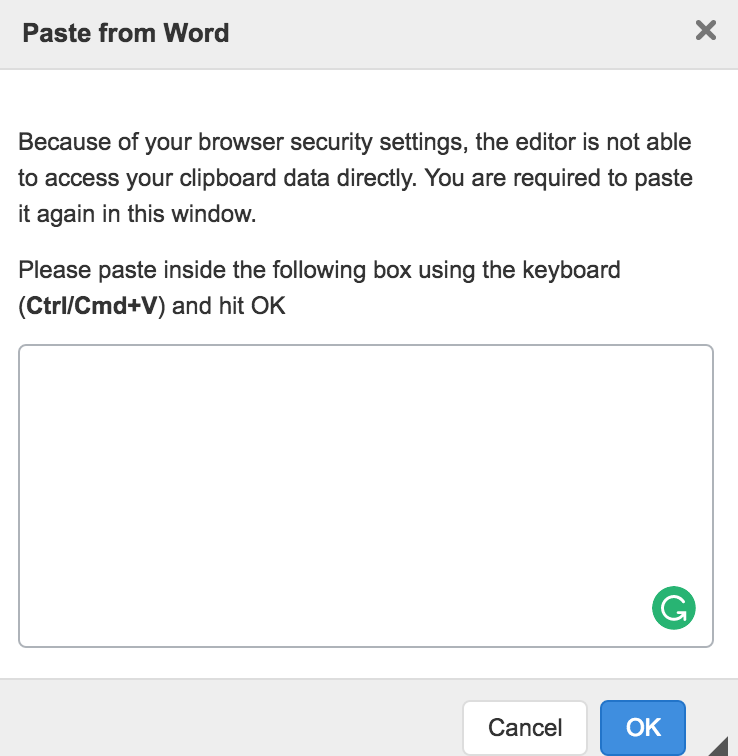 4. 将文本粘贴到打开的窗口中,然后按“确定”。
