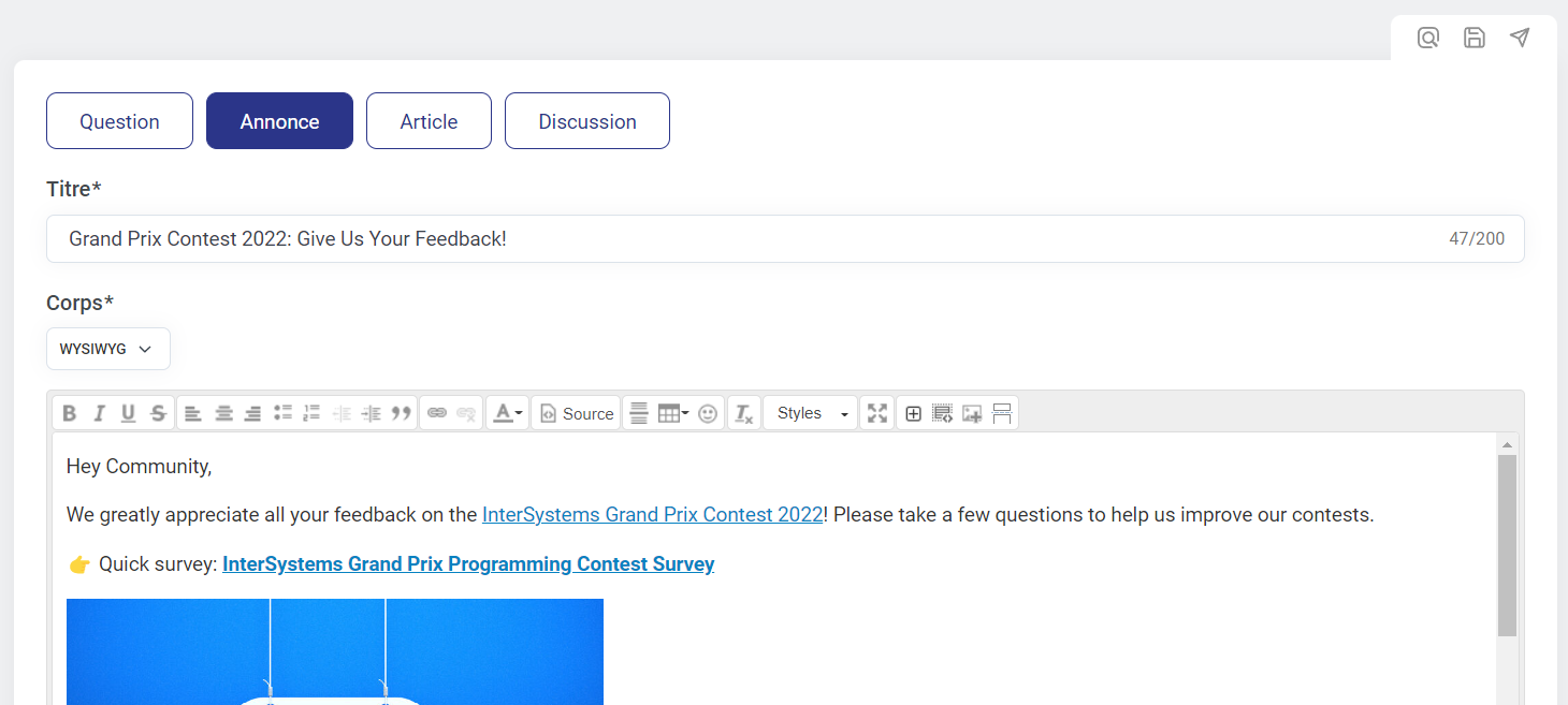 各类标签都会与原帖保持一致:一样的文章类型(问题、公告、文章、讨论)、一样内容格式、一样的标签,等等。