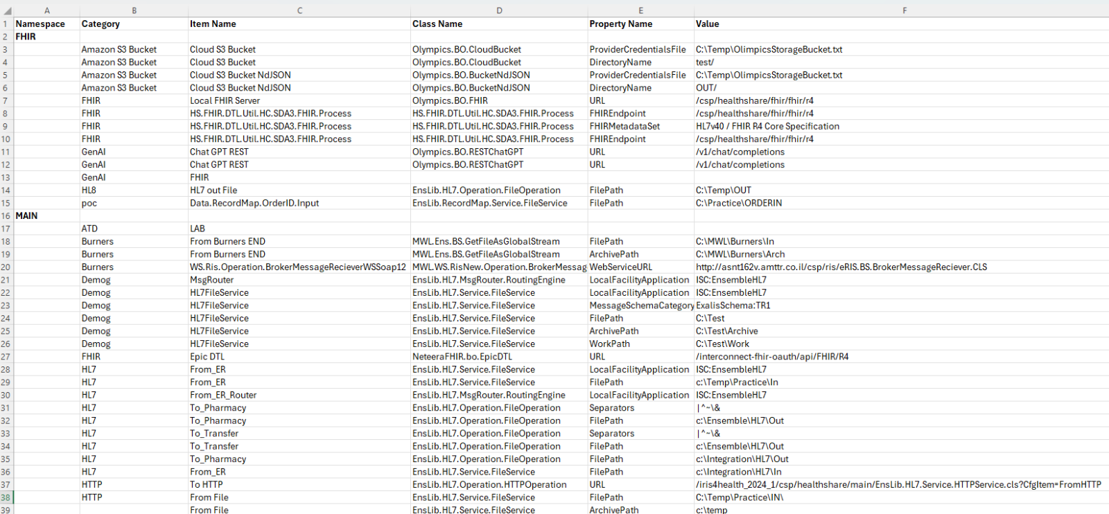 在使用InterSystems 互操作性(Iris/Health Connect/Ensemble时,配置数据通常分散在许多生产项目中:服务、流程、操作、适配器及其设置。