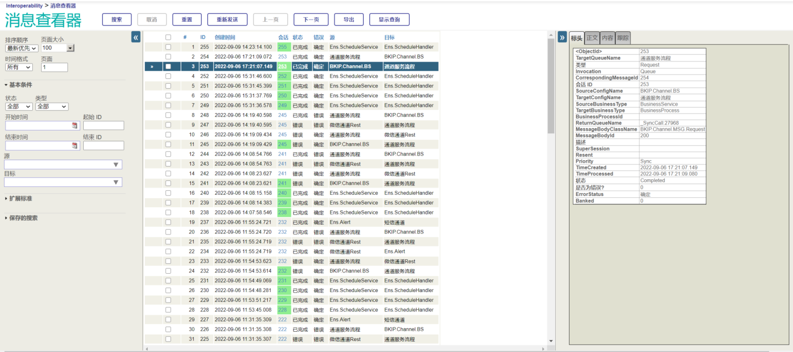 大家都用过IRIS的消息查看器吧,其实这个页面有一个隐藏的功能,就是显示【显示查询】,如图所示: