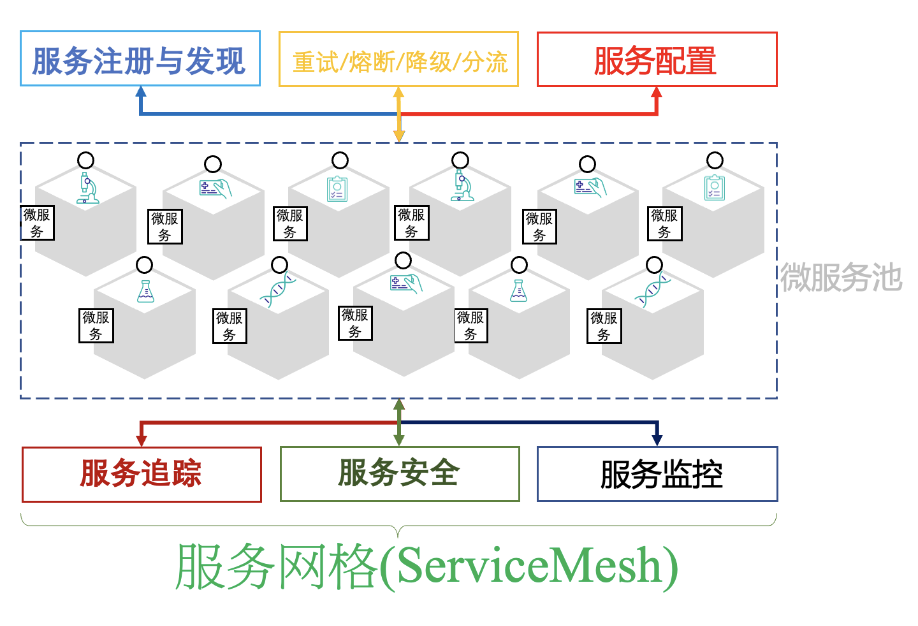 领先的商业化微服务架构厂商因此提出了服务网格(Service Mesh)产品来统一提供微服务管理能力。