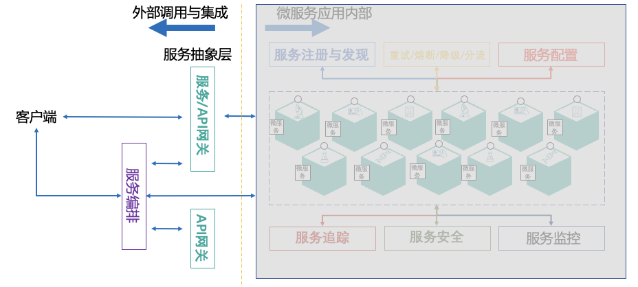 这其中大部分是保障微服务应用内部正常运作的,还有一些是微服务应用向外提供的服务抽象和服务编排。