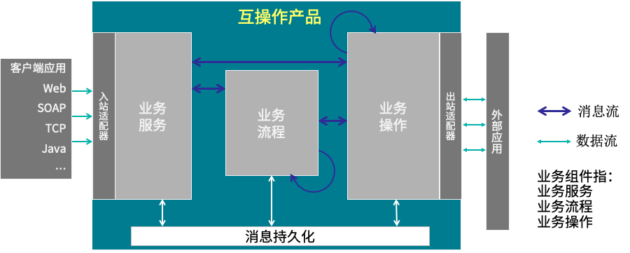 - 在互操作产品内部流转的都是消息,消息默认自动持久化并可以通过SQL等方式结构化查询