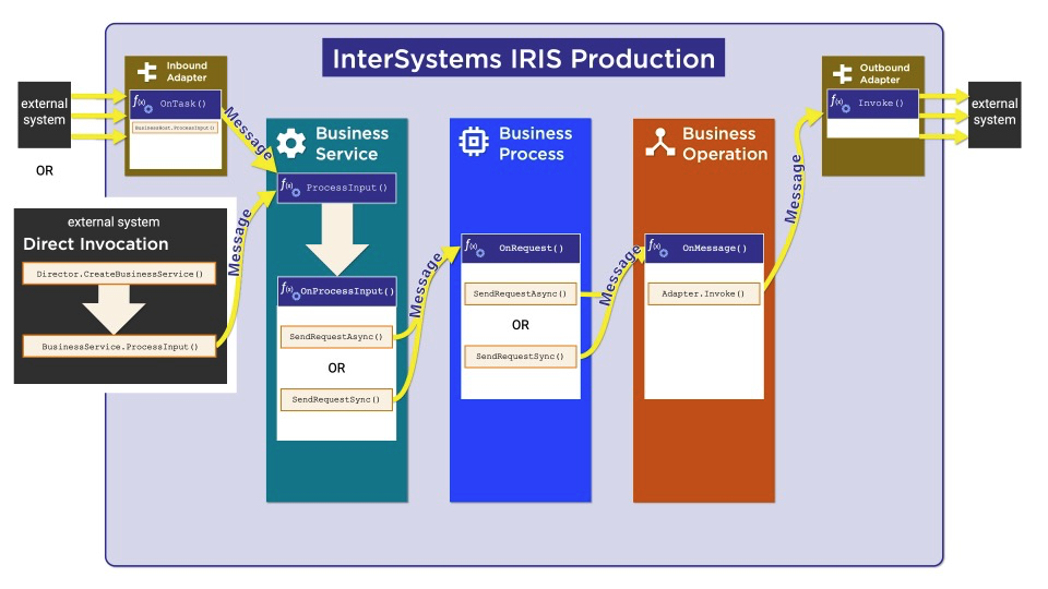 典型的InterSystems IRIS互操作产品架构如下,它的典型工作机制是: