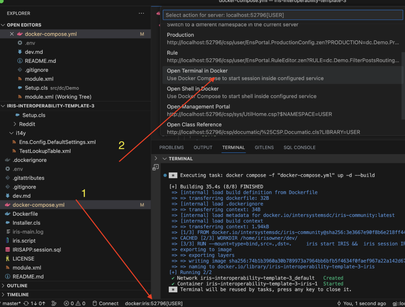 在 Docker 中使用 IRIS 环境并使用 VSC 的人员可以直接在 Docker 环境中启动终端会话。