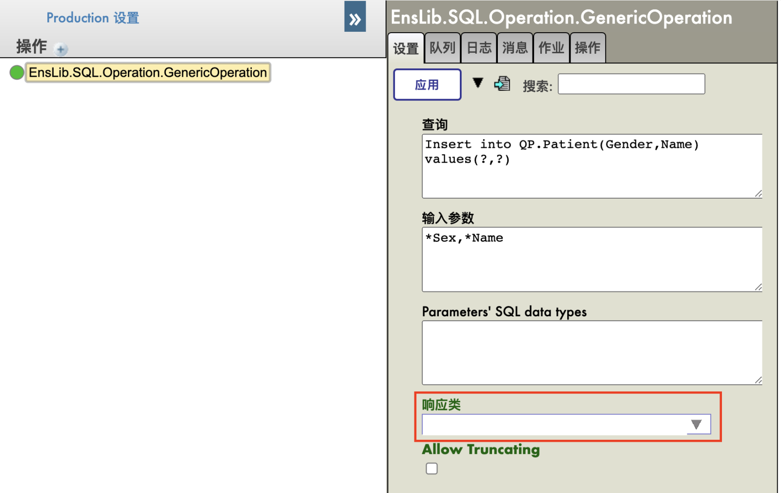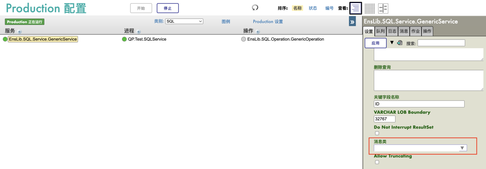 同样,SQL业务操作也无需代码开发。直接将EnsLib.SQL.Operation.GenericOperation或EnsLib.SQL.Operation.ProcOperation加入Production,进行配置即可。