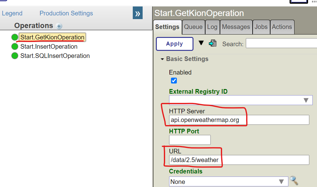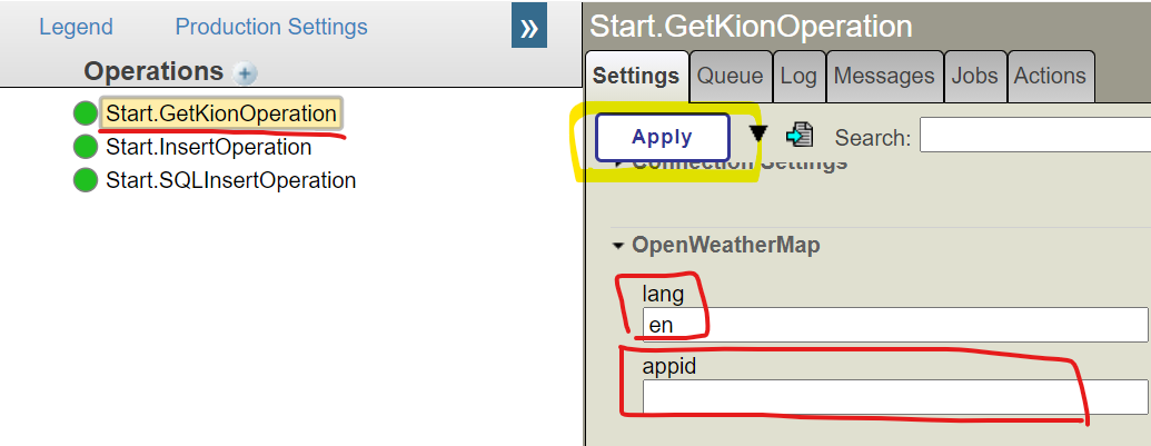 为了匹配生产模版的设置,我们将使用名称 [openweather] 生产中的设置如下: