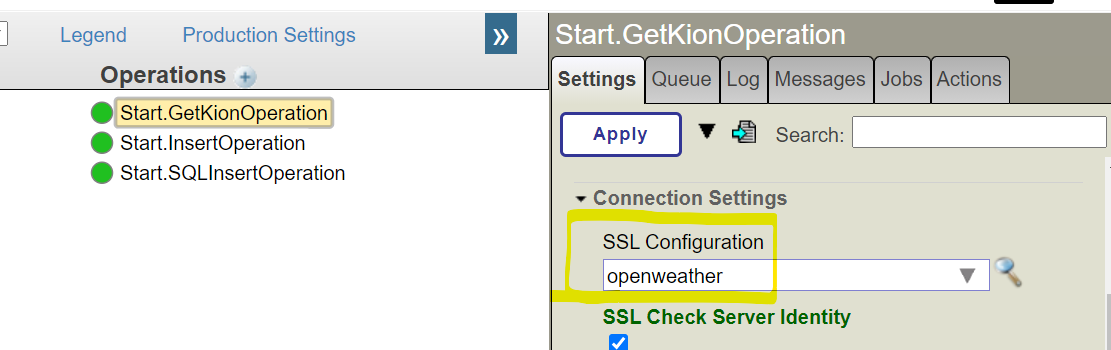 管理门户 > 互操作性 > 配置 > 生产中,单击以下服务: