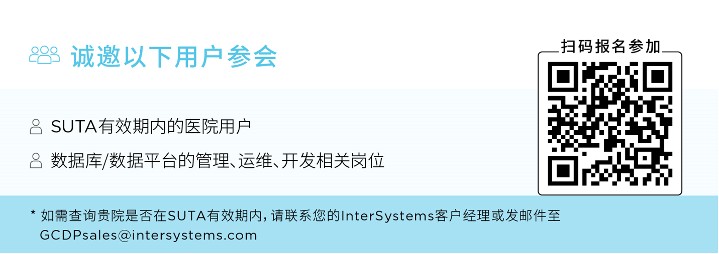 SUTA培训是InterSystems专为SUTA有效期客户提供的原厂产品技术服务,具体包括产品的基础管理、编程管理、高级管理和开发培训等。即日起2022 SUTA培训报名启动,本年度为针对InterSystems数据平台产品的线上培训,一共6期12个课程,其中每期两个课程,时间安排在周五下午半天(6月24日—8月5号),6期培训总时长共计三天。点击此处报名,或者扫描下图中的二维码报名,在您的报名信息经过审核后,我们会与您进一步沟通线上培训细节。快来报名吧!