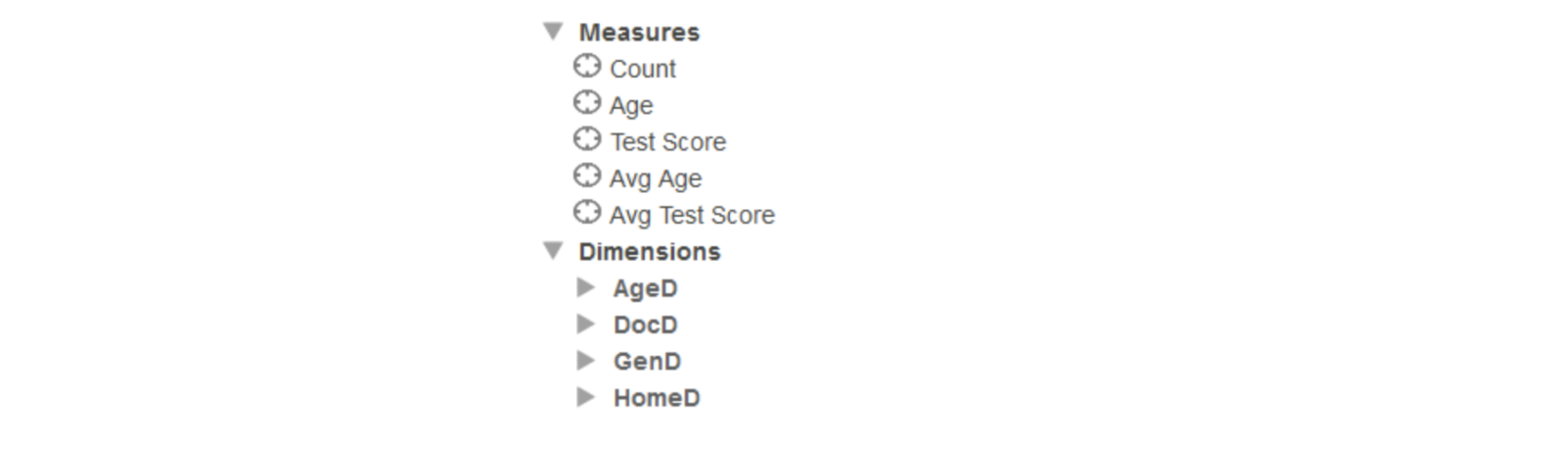 - 维度的名称取决于你打算如何使用DeepSee,用户可能永远不会看到维度的名称。在本教程中,我们遵循Patients样本中使用的惯例,假设我们不会在透视表中使用维度作为行或列(而是使用级别作为行或列)。