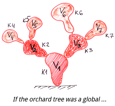 让我们把globals与最熟悉的层次结构进行比较:如下的Orchard tree-“生长在花园和田野中的普通树”,以及File system-文件系统。