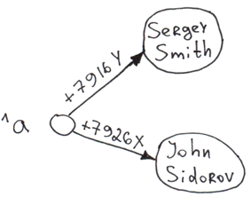 Set ^a("+7926X") = "John Sidorov"