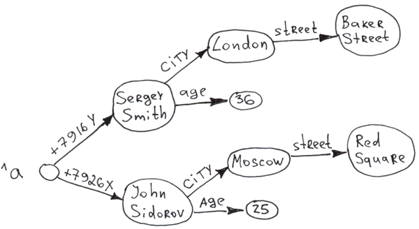 Set ^a("+7926X", "city") = "Moscow"