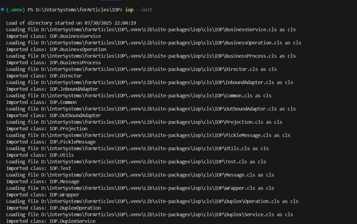 iop --start:启动settings.py文件中定义的生产。iop --stop:停止正在运行的生产。iop --status:检查生产的状态。iop --log:查看正在运行的组件的日志。iop --init:初始化 IRIS 中的 IoP 模块。iop --migrate:使用设置文件迁移生产和类。