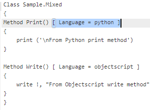 第三,您可以创建一个 InterSystems 类定义并用 Python 编写方法。对该方法的任何调用都会启动 Python 解释器。此方法的好处是使用对包含类实例的引用填充该 Python 代码块的 self 关键字。此外,通过使用 Python 在 InterSystems 类中编写类方法,您可以轻松实现处理 SQL 中不同数据输入事件的方法,例如将新行添加到表中。