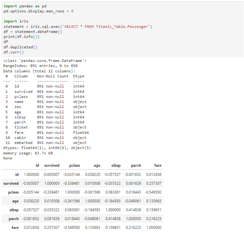 我们需要使用irispip命令安装Pandas库,然后我们可以使用下面的代码查看数据