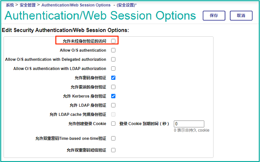 系统层面的配置,在管理门户>系统>安全管理>Authentication/Web Session Options ;