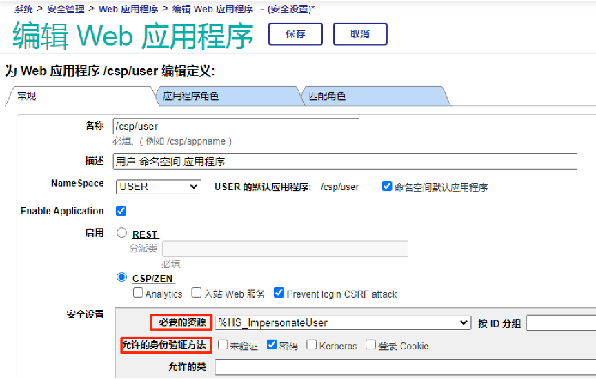 第三个要设置合适的“必要的资源”,它是对网页应用的资源权限要求。必须具有该资源的使用权限的用户,才能访问该网页应用。