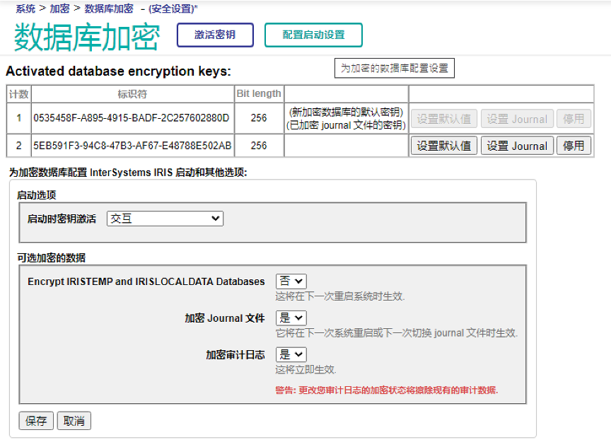 在数据库创建过程中,选择加密数据库。这样InterSystems数据平台会使用当前默认的密钥进行加密。