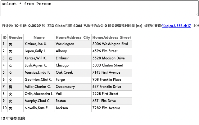 • 打开一个对象实例并引用对象类型的属性时,系统也会自动打开该对象。这个过程被称为swizzling(也被称为懒惰加载)。然后就可以对该对象进行操作。在下面的例子中,当User.Person对象被打开时,相应的User.Address对象被刷新了。