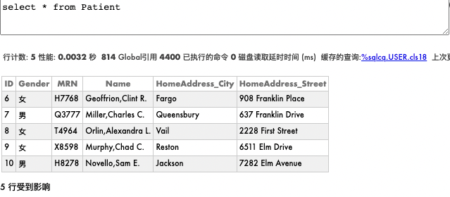 从Patient表中获取到5条Patient记录: