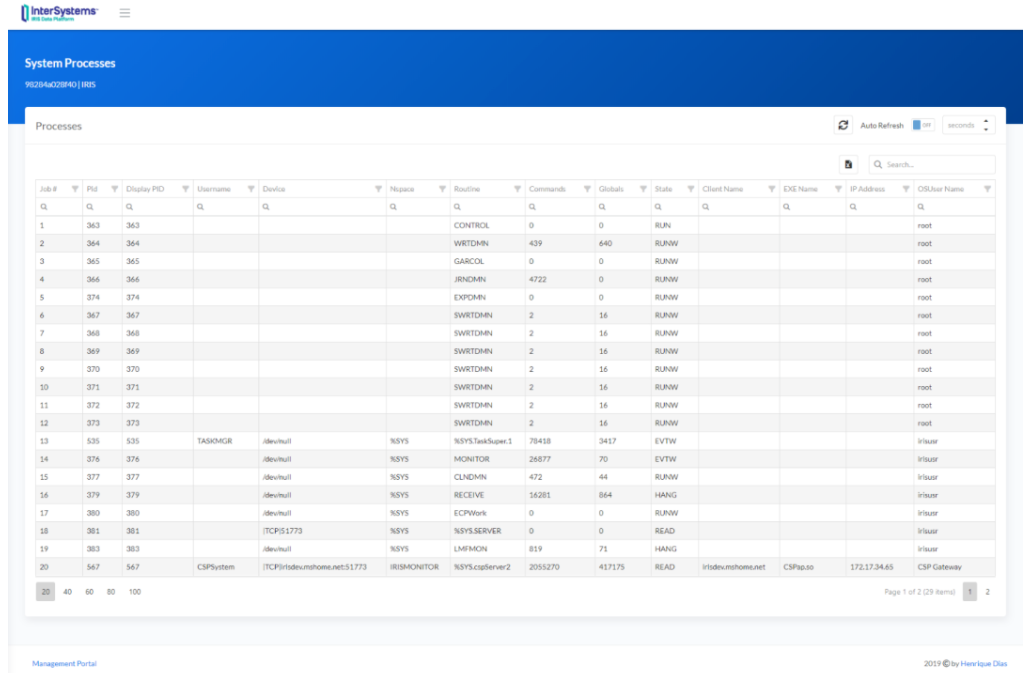 打开浏览器,并转到链接:http://localhost:52773/csp/irismonitor/dashboard.csp