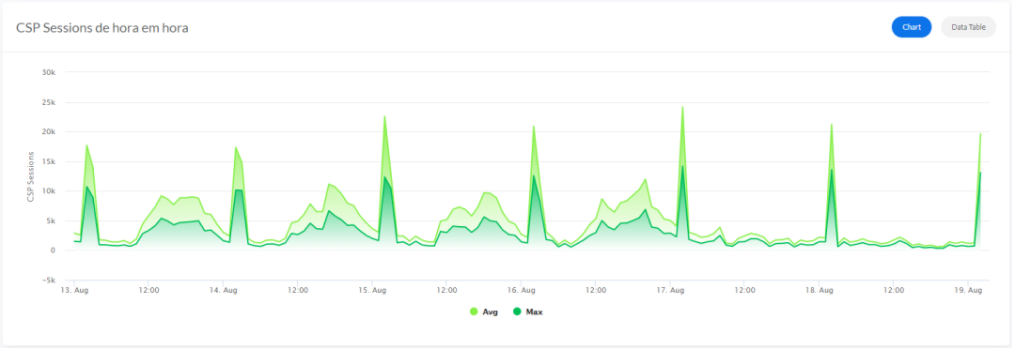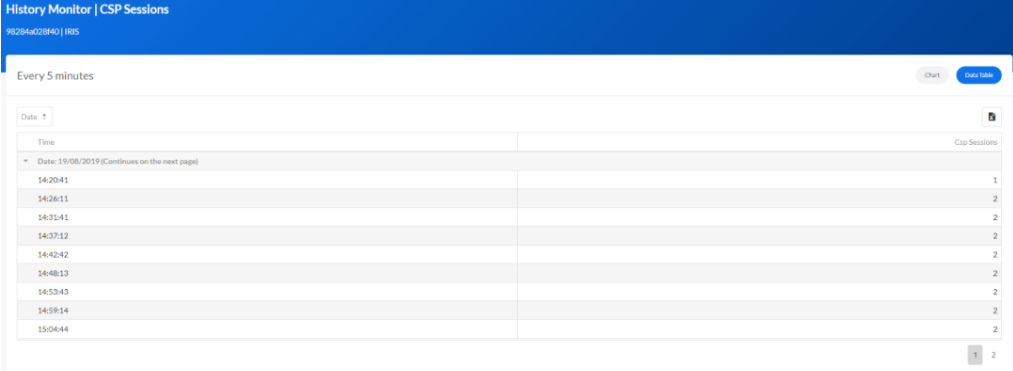 CSP会话和许可的History Monitor可显示三个部分的信息: