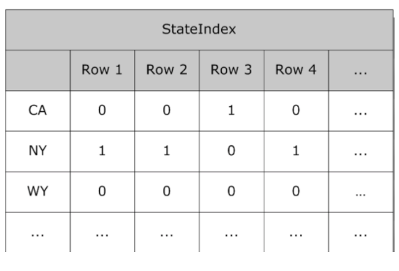 - 标准索引(类型=索引)- 一个持久的数组,将索引值与包含该值的行的RowID联系起来。任何没有明确定义为位图索引、位片索引或范围索引的索引都是一个标准索引。