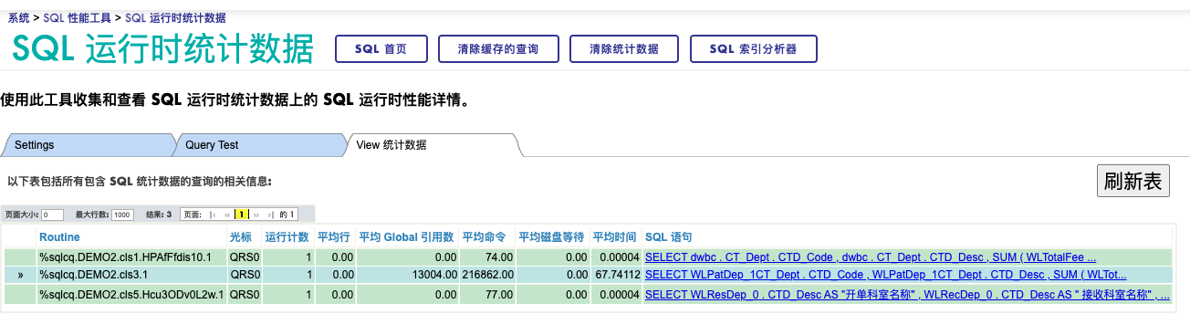 如果使用SQL, 你可以查询视图%SYS_PTools.SQLStatsView , 比如下面这个例子: