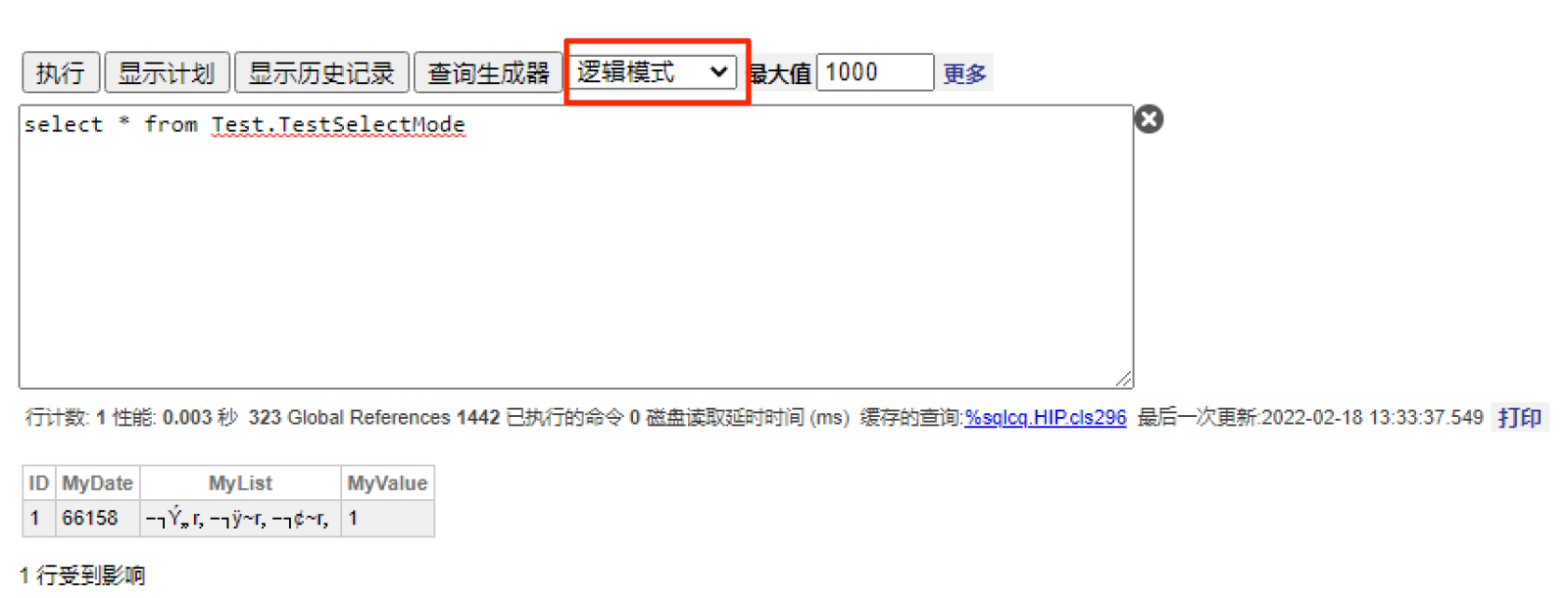 }#SQLCompile Select可以设置为逻辑模式(Logical)、显示模式(Display)、 ODBC模式(ODBC)或 运行时模式(RuntimeMode)。而RuntimeMode默认为逻辑模式。