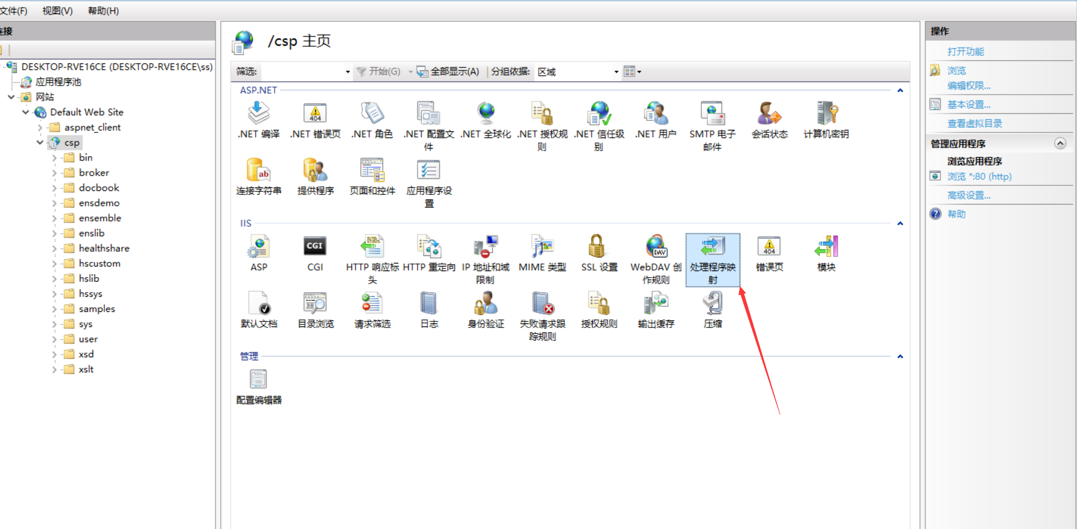 再回到iis页面,网站csp的模块里面就会出现对应的CSPms的本机模块。