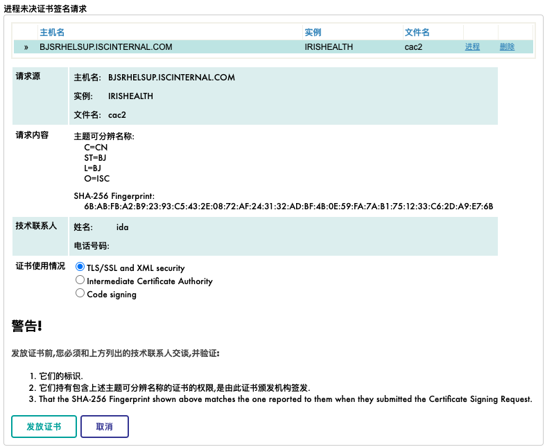 1.首先,我们先准备一下所需要的证书。通讯的双方为Web Gateway 和 IRIS Super Server, 双方都需要准备好各自的证书和key。IRIS自带的Public Key Infrastructure(PKI)功能内置了OpenSSL,可以用来生成服务器端及客户端的证书和key。在使用此功能时,IRIS可以同时作为CA Server和CA Client,作为CA Server时可以生成自签名的证书,可以批准CA Client的证书申请并将证书下发给CA Client。